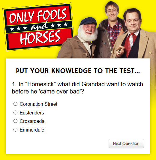 I built a variety of apps for the official Only Fools Facebook page, including: