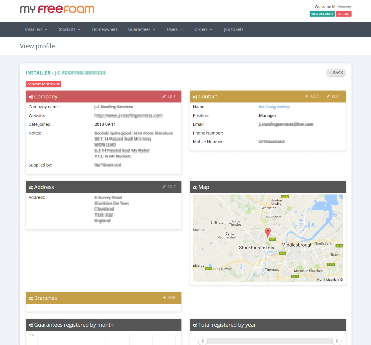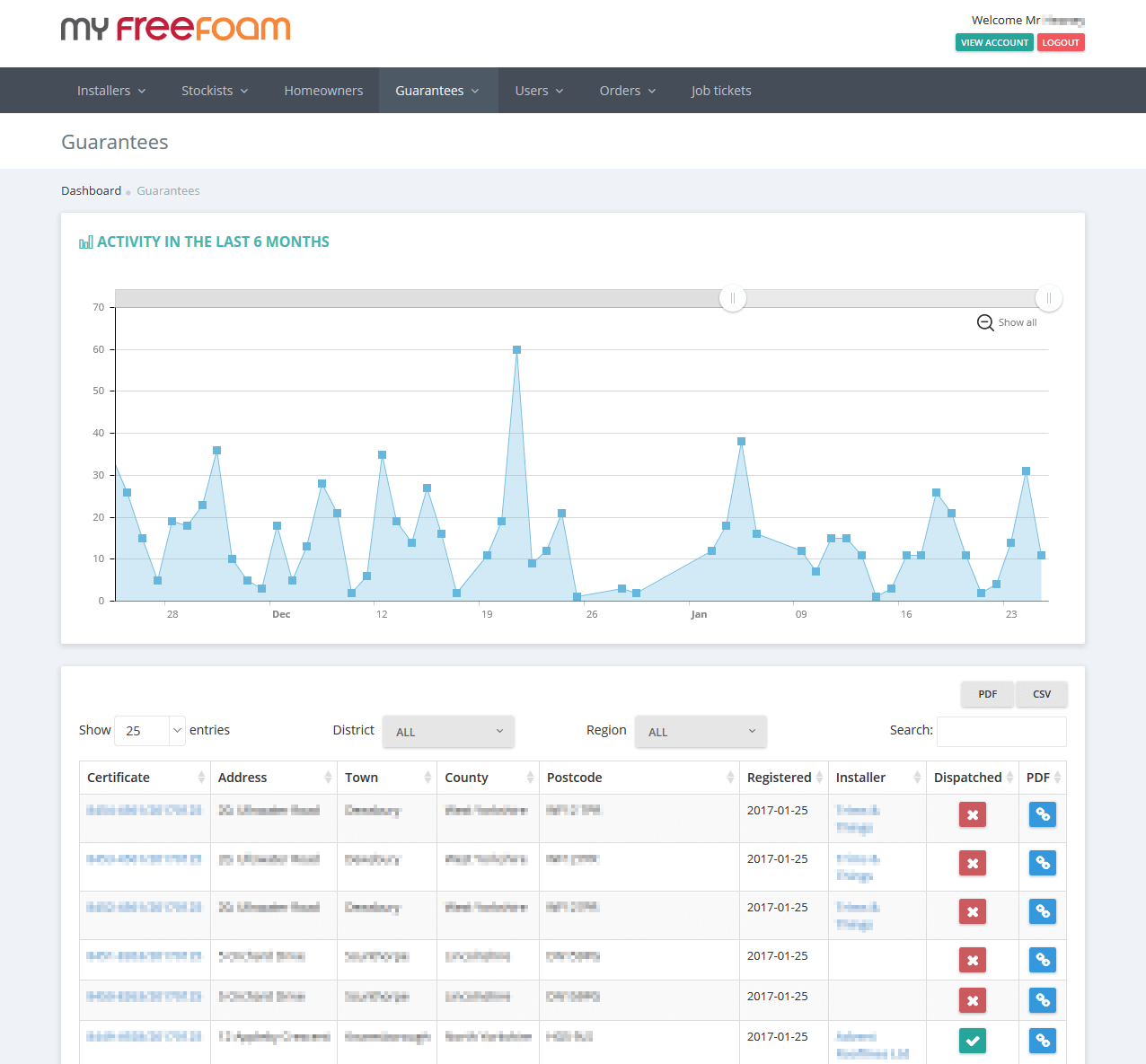 My Freefoam is a custom built, centralised system that allows Freefoam to communicate with their partners, assign and track sales leads, and manage a database of product guarantees.